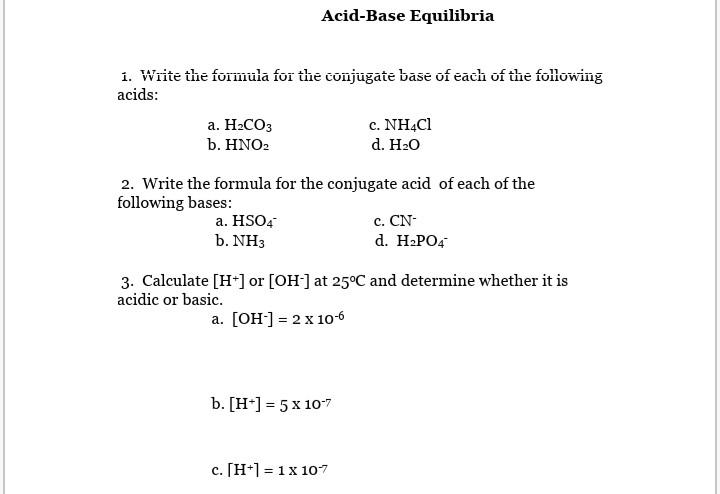 Solved 1 Write The Formula For The Conjugate Base Of Each Chegg Com